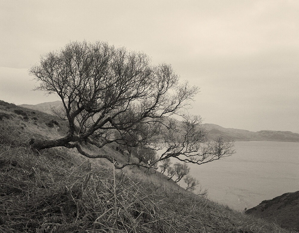 After years spent on overtly political work, Easton wanted to make something that carried a quieter, more hopeful response to the world. He had been thinking about how easily people become entrenched in their ideological corners and how readily the idea of an “other side” takes hold. Easton stayed at Barnhill and worked with a 10×8 field camera, moving at the natural pace of the island. The photographs take the form of hand-made silver gelatin prints, toned in strong tea – a method that suits the atmosphere of the book and nods to Orwell’s lifelong devotion to the drink; he wrote about how a well-made cup could steady a person in difficult times.