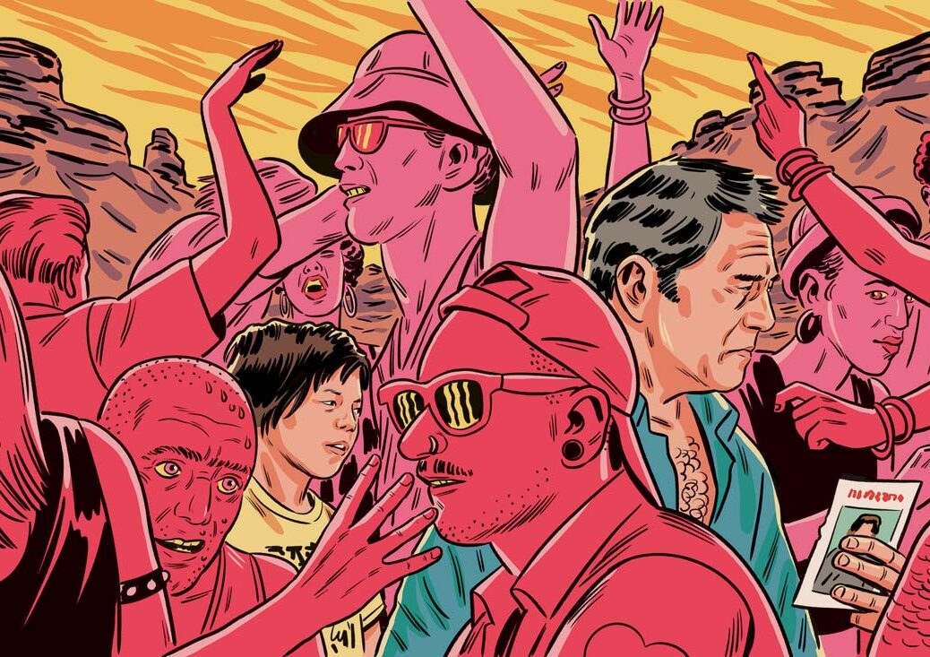 The army arrives and shuts down the rave, ordering them all to evacuate for their own safety as war looms. Our little clan of ravers strike off from the main column of vehicles, heading to that next destination in their heavy trucks. Luis, in his ordinary car, with his small son and their little dog, impulsively decides to follow, uninvited. “You don’t understand what you’re getting into,” they warn him. “This is the desert…”