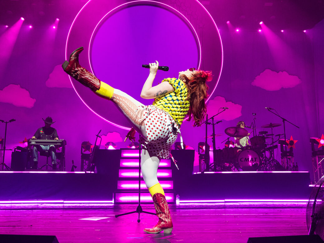 Thompson is part of the wave of artists taking country music, with its inherently conservative rep, and making it a vehicle for fresh, subversive pop. When she performs “I Wanna Be a Cowboy, Baby”, she leads the audience in a line dance while we wrestle with the lyric, “I feel bad, ’cos I didn’t cry/When someone I grew up with died/But I break down every time I’m on the scales”. In a world obsessed with pretty, Thompson sings her ugliest thoughts.