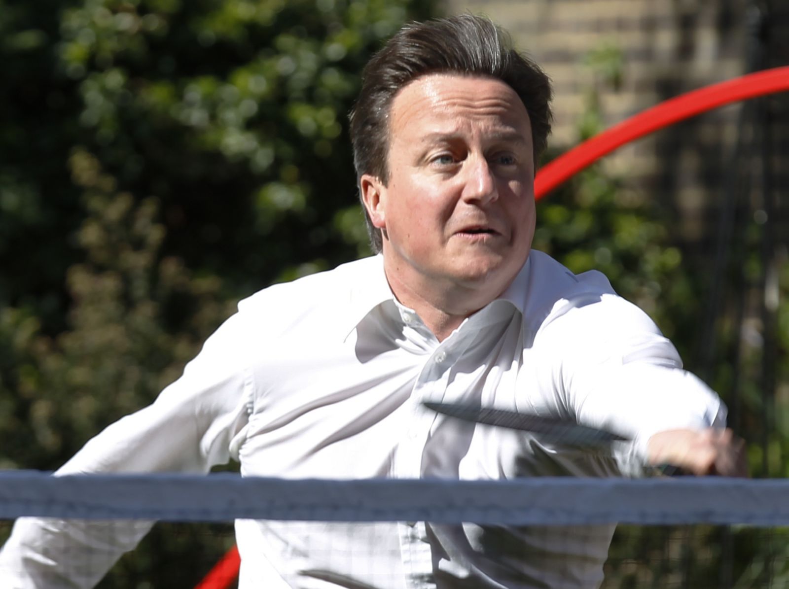 But wait a moment. Who’s this joker, prancing about the gardens of Number 10 Downing Street in his shirt sleeves, wafting a badminton racket around as if he’s trying to swat a fat, asthmatic fly? Why, it’s a pre-tracksuit David Cameron, having a laugh and a joke while playing sport.
