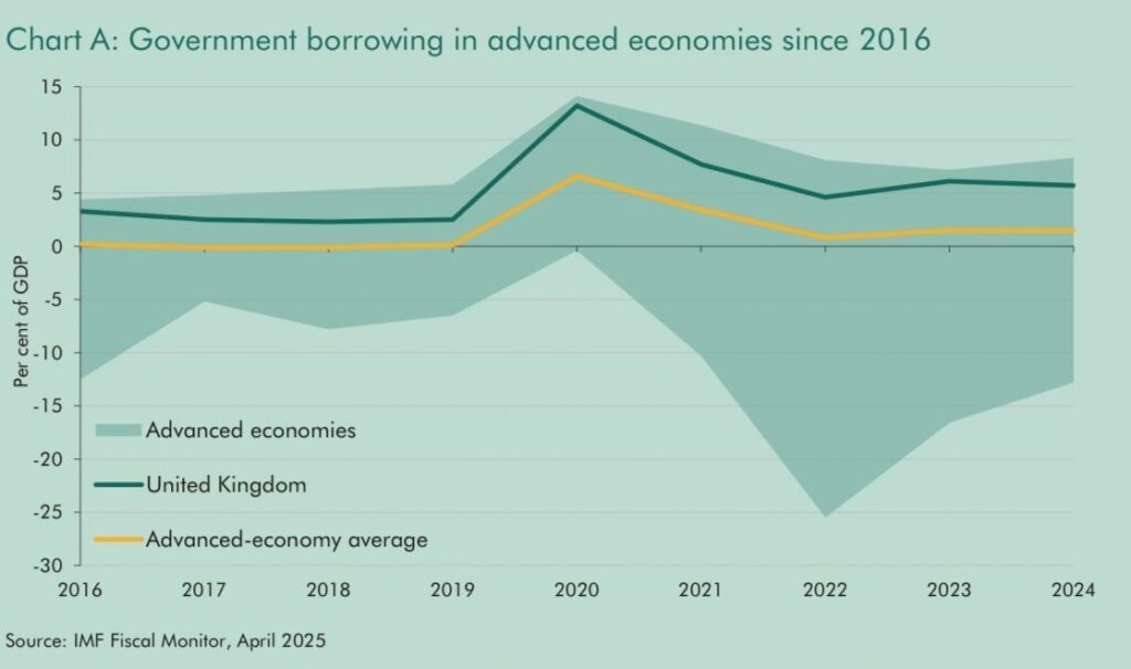 The OBR chart above shows what Reeves is contending with. Borrowing has consistently outpaced counterpart nations to the point where, by the end of 2024, the UK recorded the sixth-highest national debt, fifth-highest deficit and third-highest borrowing costs among 36 advanced economies.